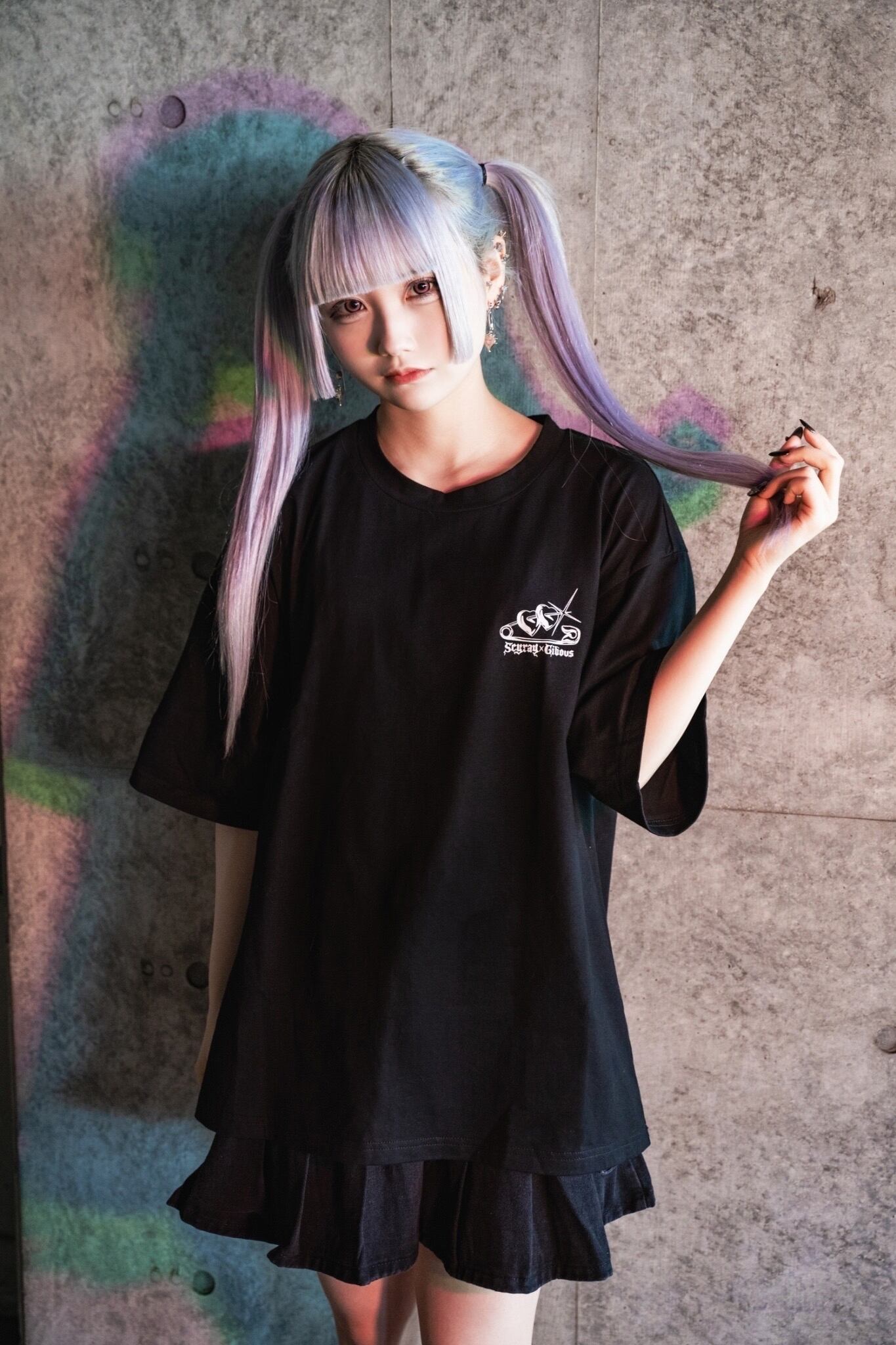 ブラックデニムのプリーツカーゴスカート。