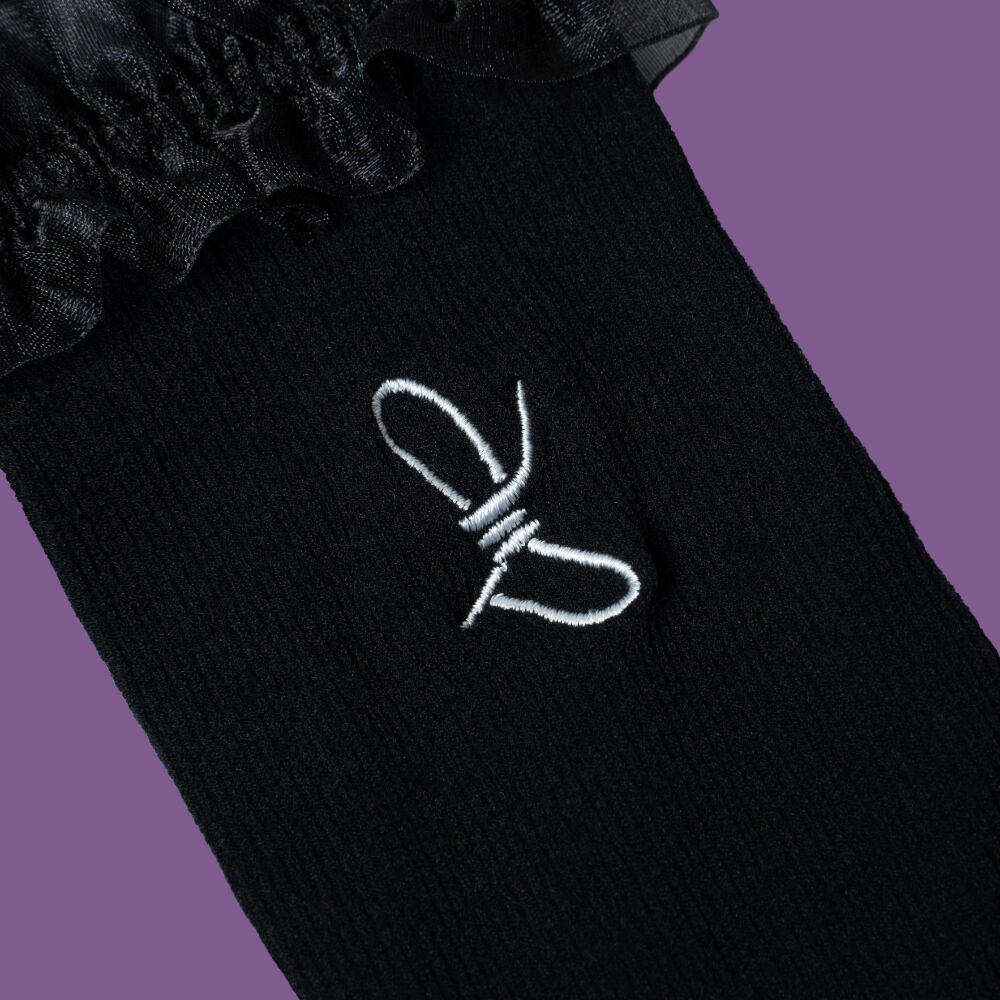 <DISCRIPTION> 夏の必需品アームカバー。 さりげないフリルがポイント。 ワンポイントで有刺鉄線の刺繍が施されています。 ※刺繍は画像と異なり紫色の仕様です。 <SIZE> 幅 長さ 38cm 38cm