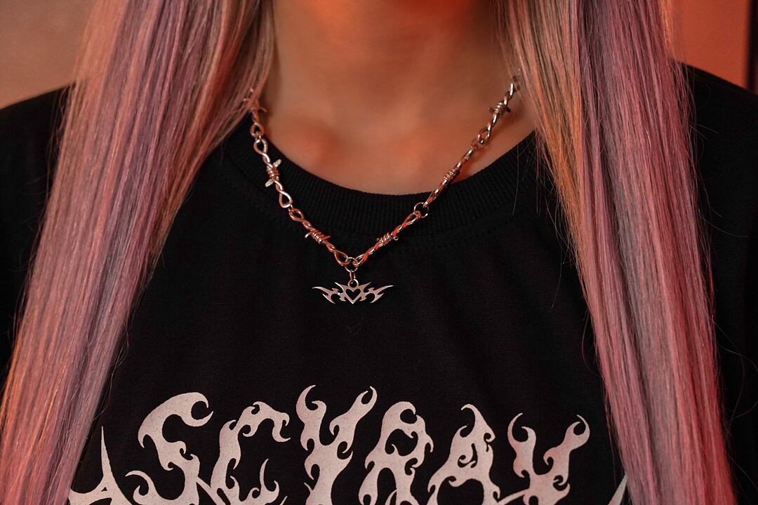トライバルのハートのメタルチャームがポイントのシルバーチェーンネックレス。