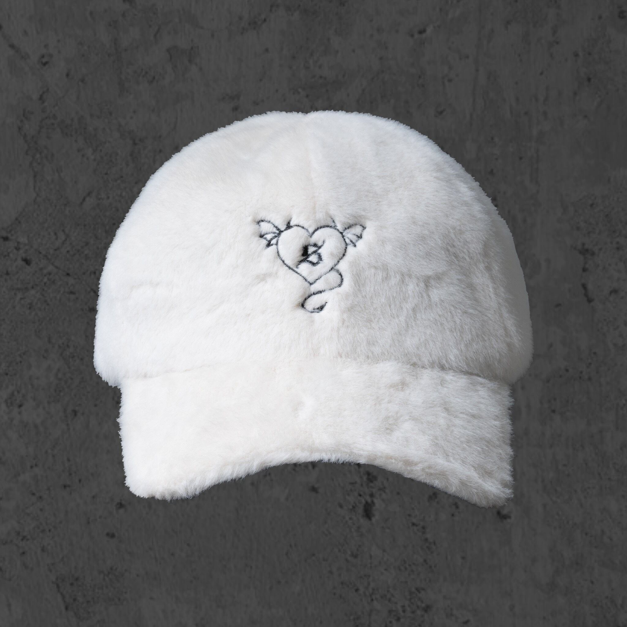 ふわふわ素材にscyrayロゴが刺繍されているファーキャップ。