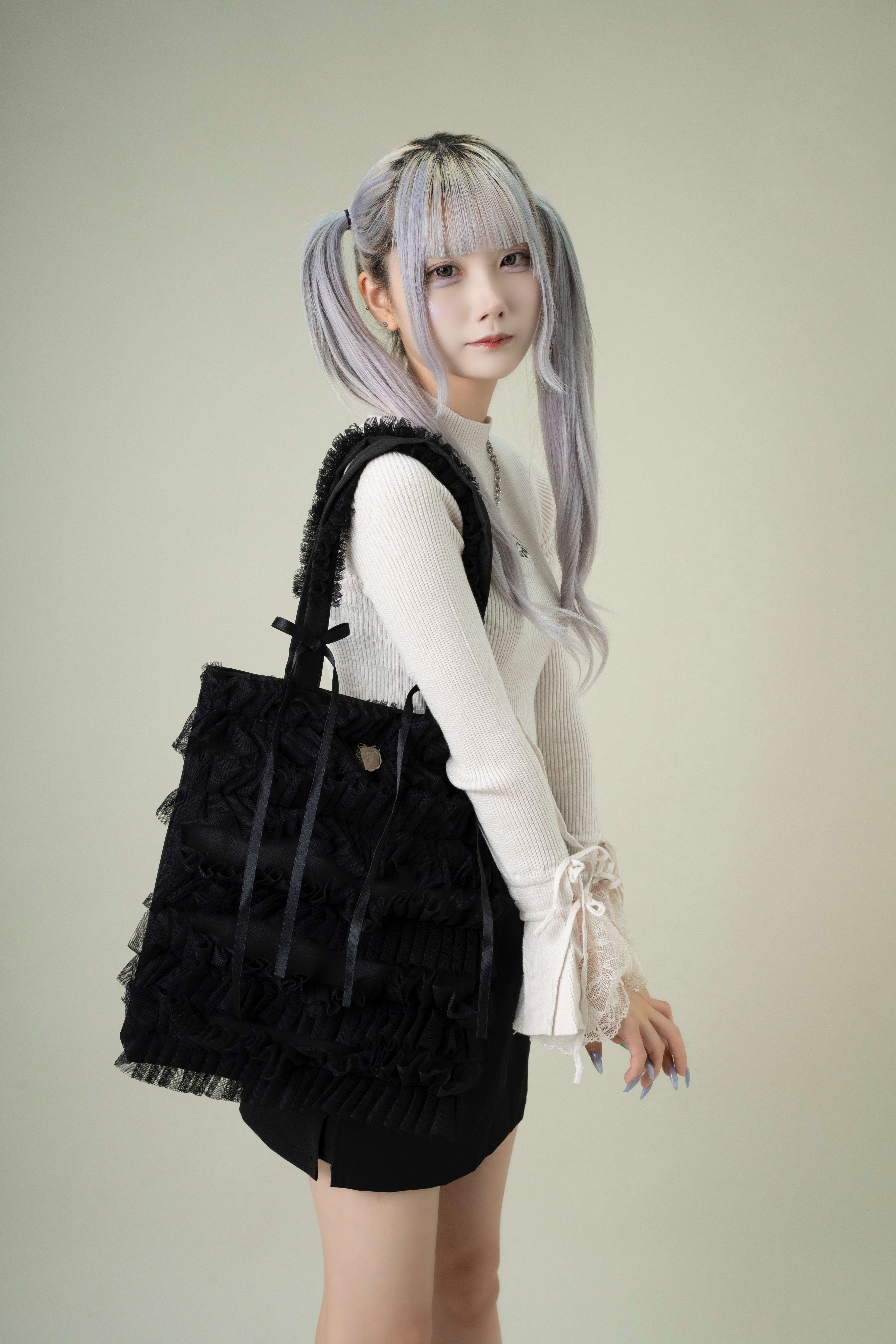 ribbon frill metai charm totebag